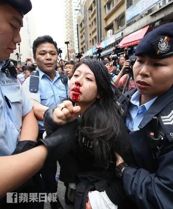 - ↑ facebook video:【爆缸之謎】唔駛估啦,黑衣女示威者搞到流鼻血嘅原因,睇片就知道,多得慈母關照。,2015年4月1日