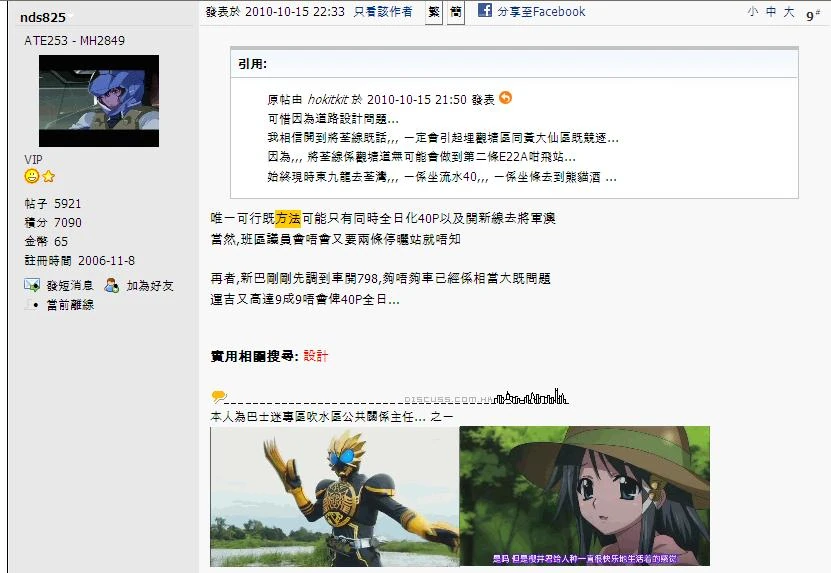 動漫派巴士迷使用含有動漫角色相片的頭像及簽名檔的帖子截圖