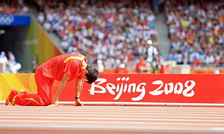 在2008年8月18日早上在「鳥巢」舉行的男子110米欄初賽中,劉翔在最後一組出場比賽時因腳傷而退出比賽,令一眾一心希望看劉翔比賽的觀眾非常失望。[11]