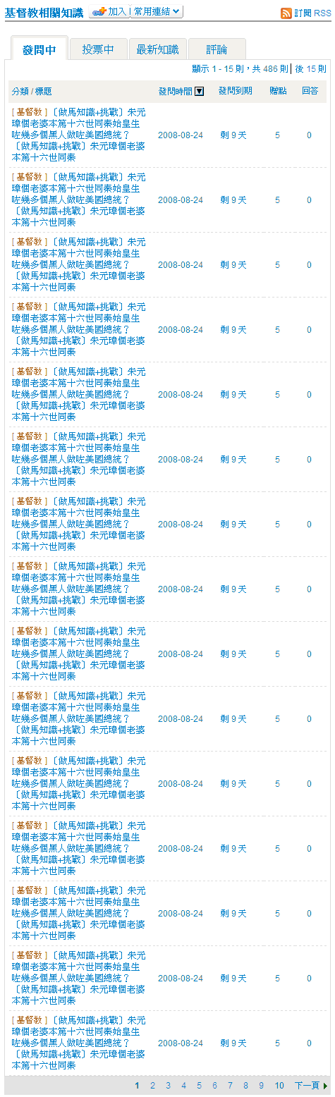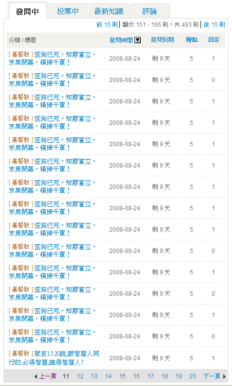 當日 22:27:12 當哨兵發問了十條「歪狗已死,知膠當立,京奥閉幕,橫掃千軍!」[1]的問題後,大軍以一小時的時間極速發問了十多版「〔做馬知識+挑戰〕朱元璋個老婆本篤十六世同秦始皇生咗幾多個黑人做咗美國總統?」[2],最後一問 在23:27:24問出後,共洗了12版。