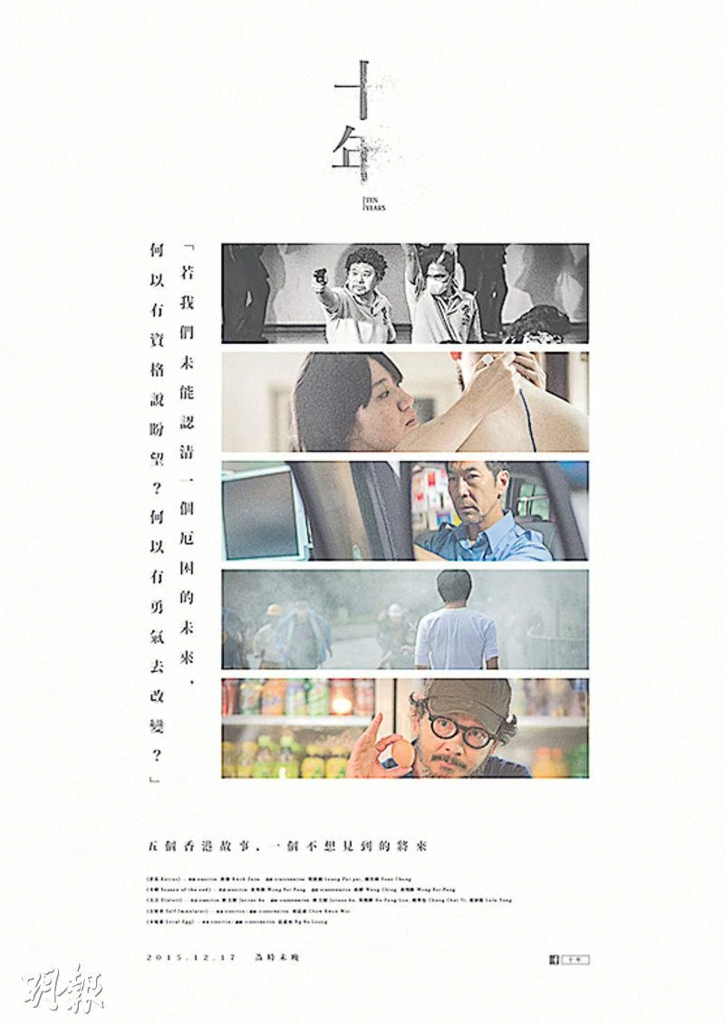 《十年》預視香港因回歸中國出現的種種問題,會於十年後繼續惡化,例如普通話考試不合格的的士司機遭到立法禁止在旺區接客、中聯辦操控下警察政黨黑社會合謀製造社會恐慌、出現類似文革時代「紅小兵」的少年軍,甚至出現港獨抗爭者自焚的慘劇。