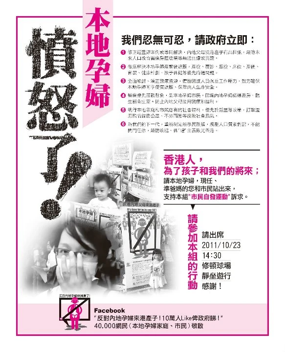2011年,內地孕婦來港產子的人數持續增加,開始引起市民的注意。內地孕婦來港產子人數之多,令市民擔心公立醫院的服務會受到影響,亦有市民不滿愈來愈多內地人來港與港人爭奪資源及福利。香港政府一直愛理不理,最終一群市民不再啞忍,發起此群組務求引起政府及其他市民正視問題。