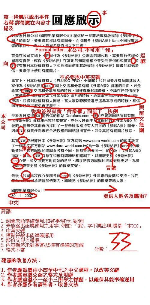 事隔八年,國際影業有限公司的名字再次出現在公眾視線上。八年前,牠用版權惡法殺死全港的大型叮噹(多啦A夢)網站,令大量珍貴的叮噹研究資料流失,網上一遍哀嚎。八年後,牠再次擧起死神鐮刀,瞄準香港市民對叮噹配音員林保全先生的悼念。 甫踏進2015年,聲演叮噹的香港配音員林保全先生不幸辭世,全港市民莫不感到痛心。大家只能對着熟悉的叮噹圖像遙寄哀悼,網民唯有繪畫、分享林保全先生與叮噹一起的畫像。電視台製作特輯,報章雜誌推出封面專題,回望香港多年來累積成的叮噹文化,傳揚這機械貓背後那份有如家人般的親切、輕燙心窩的溫暖。這些事,本來都是獲得《叮噹》香港地區授權的國際影業,應該盡的本份、職責。然而,該公司在這方面的成績單,多年來由始至終都有如白紙般空白。套用摩亞大人的說法:「咁係咪叫『尸位素餐』呢?」 倒是《100毛》雜誌,使用了叮噹揮手回望的公仔作封面,內頁裏報道劇情、法寶、人物時使用了相關插圖,以及在一些經轉化的二次創作旁配上法寶圖片,國際影業就有如殭屍彈出棺材般,跳出來聲稱雜誌侵犯版權。誠然,雜誌是在市場銷售,在資本主義商業市場上作牟利運作,有義務遵守商業市場上的規矩,包括版權法。雜誌未經國際影業授權就率意使用圖片,的確有可能違法(註1)。 不過是對香港人來說,眾所周知,國際影業一向跑得慢、唔夠快、無速度。立法會出版界功能組別議員馬逢國曾聲稱,要取得版權人授權其實很容易:「你去找劉華問可否不收我錢,一個電話啫。」可是,連眞金白銀向國際影業購買的傳媒,其前線工作人員發現購得之物有問題時,不論怎麼向國際影業追討都沓無回音。不知國際影業的人可否回答我們,若以其速度,雜誌要合法取得授權推出悼念專題,要等三年?十年?還是待至2112年? 而且,商業市場牟利運作自有其規矩,但在民間大街小巷,市民日常通訊的合理使用,絕對是截然不同的情況。整整八年前,2007年1月20日,國際影業向多個本港民間網站發出措詞強硬的律師信,逼迫他們在兩條道路裏選一條:要麼把網站上的圖片全滅,要麼把網站本身全滅。這些網站都是非商業、非牟利,甚至網主自己嘔錢出來,爲叮噹作免費宣傳的。最後,香港叮噹迷只能無奈地寧爲玉碎。 必須指出的是,當年這些叮噹網站使用的圖片量,都非常克制,大多數情況都是要介紹相關的作品、產品、設定、法寶等資訊,必須具備相關圖解作說明,才使用之。更有不少圖片是網民自製的。這些圖片的使用,並無實質傷害原有作品的版權利益,亦沒有取代原作市場。即使使用量、流通量多數倍,都絲毫不可能取代原作市場,不會對原有作品的版權利益造成實質傷害。相反,網站替叮噹免費宣傳、推廣,對原有作品的市場百利而無一害。這些叮噹網站,與刊出整篇整冊漫畫內頁的眞正盜版網站完全不同。但國際影業就是要拿叮噹迷開刀,宣示牠對叮噹圖像擁有在香港的「主權」。 當年的事震怒全城,亦令不少市民看清在「版權」之名義下可以有多邪惡、不義的事。網民路見不平,拔刀相助,嘗試聯絡國際影業,結果發現官方網站上「contact us」的聯絡版面是僞裝的,按下「submit」後不會傳送任何訊息。網民又直接致電給國際影業,結果被cut線。市民怒火越益高燒。終於在2007年1月30日,國際影業發出名爲「accouncement」及「啟示」(實際上應爲「announcement」和「啟事」)的文章,言之鑿鑿地說在「稍後時間」聯絡相關網主,聽取心聲,交流雙方對網站的意見。事件中每一個網主都等了又等,等了又等,整整八載春秋過去,每一個網主都吃了三百六十五天乘以八年的白果。國際影業這段時間做過甚麼?是否死了?要是死了還合理,可以死了八年後又突然彈出來,空閒地向另一處扔炸彈,那麼走了八年的這筆冤賬,國際影業現在捨得向網民清還沒有?! 二次創作權關注組在此強烈譴責國際影業有限公司,不但在推廣叮噹文化上尸位素餐,更以版權之名行兇,向叮噹迷下毒手。這八年間,那種被老屈成侵權犯、含冤莫白的煎熬,不但直接傷害着每一個網主,亦化成厲鬼夢魘,入侵香港市民的日常生活,令大家正常的溝通與創作,都變成在頸上的斬首刀下渡日。既然國際影業現在終於在大眾視線下蒲頭,二次創作權關注組要求國際影業,立即與每一個網主以及與本關注組,展開公開的對話,使我們有機會證明自己的清白。欠債還錢,天公地道,國際影業拖欠全港市民足足八年的孽賬,是時候要清還。 註1:我們說「有可能」違法,因爲目前香港版權法裏,也豁免了新聞報道時合理使用圖像的責任。不過,有關豁免規定圖像的使用不能超過報道所必需的幅度,這個幅度的限量往往很少,以事件中該雜誌的使用篇幅計算,未必能用這項豁免辯護。