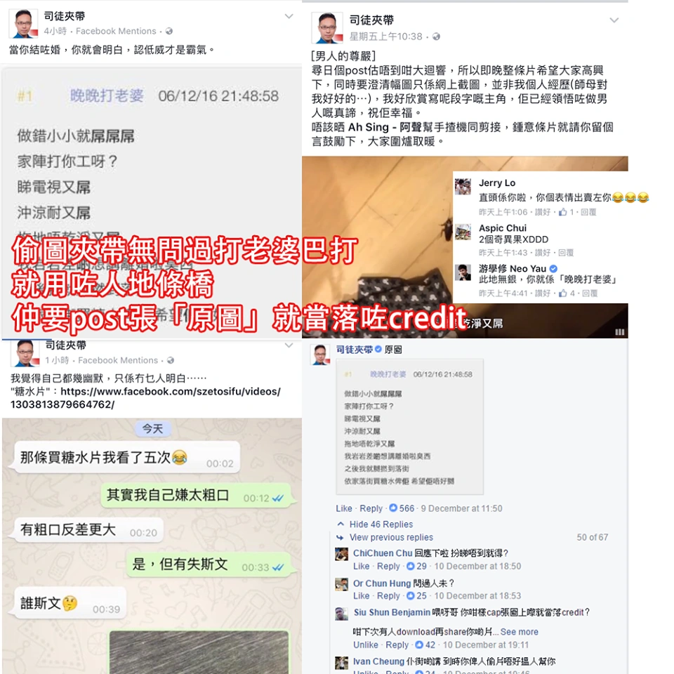 - ↑ 香港01:【晚晚打老婆】偷網民橋拍片 司徒夾帶道歉兼應要求捐款一萬,2016年12月19日