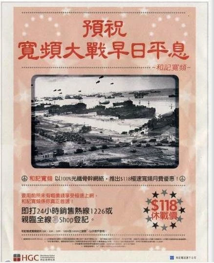 和記寬頻在2007年的寬頻大戰中的主要角色,就是充當旁觀者,並刊登報紙廣告提倡「停戰」,不過反應欠奉。