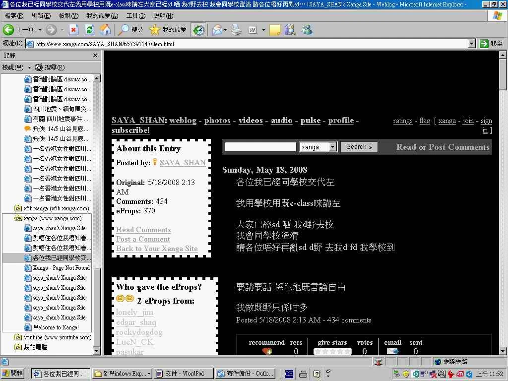 - Uwants:就F.1女生Xanga一事, 對「批評她的眾人」的我見