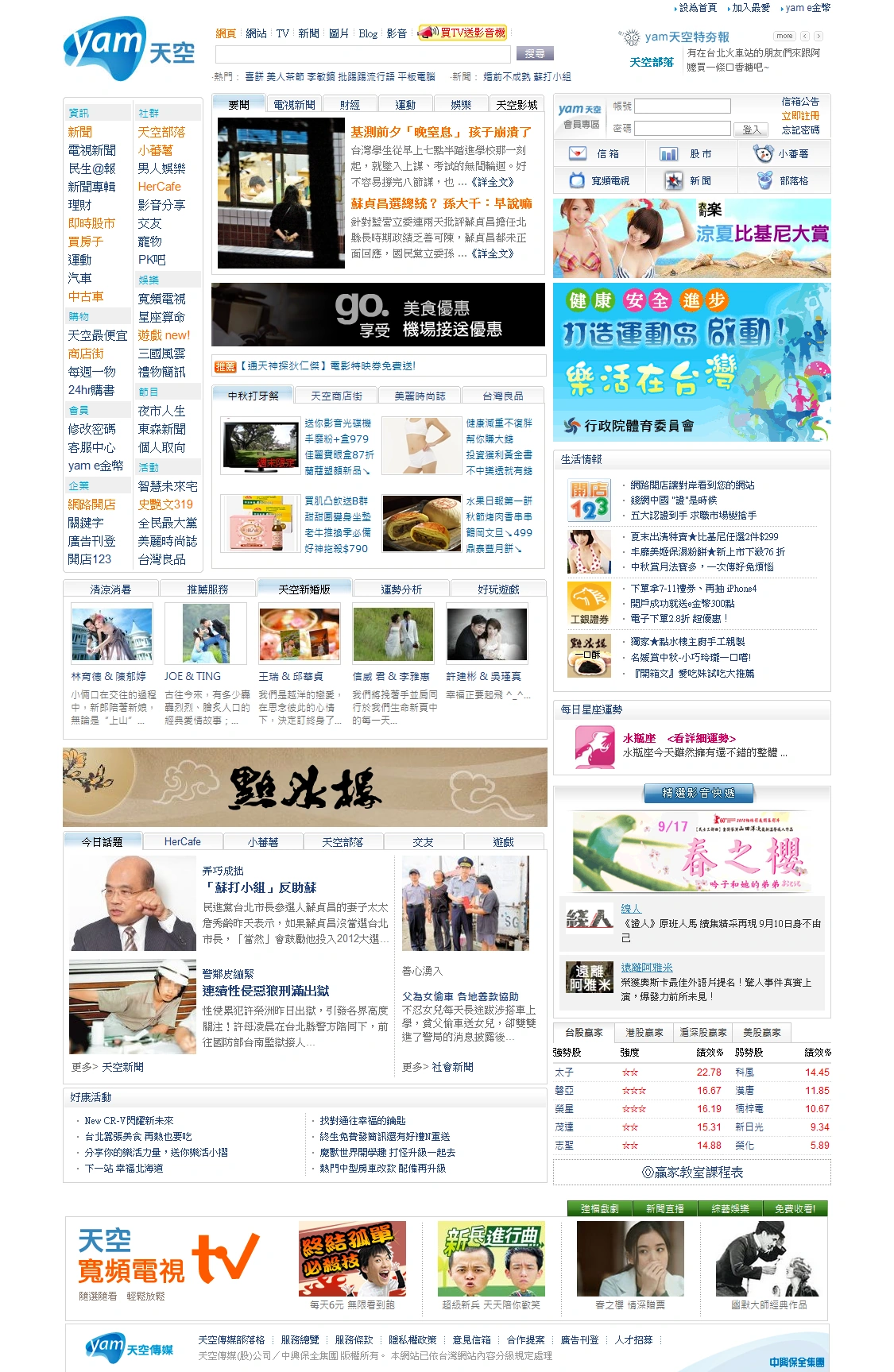 Yam天空為天空傳媒旗下網站,自稱提供多種服務,包括網誌、上網、新聞、遊戲等,其中旗下遊戲「忍豆風雲」極受香港小朋友歡迎,網站入選香港百大網站。 外部連結 Yam天空主頁 忍豆風雲網頁 大事記 2000年4月︰網絡數碼股份有限公司成立。 2006年5月:收購和信超媒體(Giga)的ADSL事業。(後於2009年9月移轉中嘉網路管理) 2006年9月:收購蕃薯藤數位科技所經營的yam.com入口網站。 2007年3月︰更名為天空傳媒股份有限公司,並以「yam天空」做為全新的品牌識別系統。 2009年3月:天空傳媒正式英文名稱更改為「YAMEDIA Inc.」 服務項目 入口網站-yam天空,〔原蕃薯藤入口網站(yam.com)〕 影音寬頻電視-yam天空寬頻電視TV,〔原「Webs-TV」寬頻電視〕 部落格服務-yam天空部落blog,〔原「天空部落」〕 影片租借-樂到家國際娛樂(百視達台灣區主加盟) 兒童入口-小蕃薯 女性網站-hercafe 天空傳媒是一個小作品。你可以通過編輯或修訂擴充其內容。 分類: 網站 小作品 香港百大網站 除非另有註明,否則社區內容均使用CC-BY-SA授權條款。