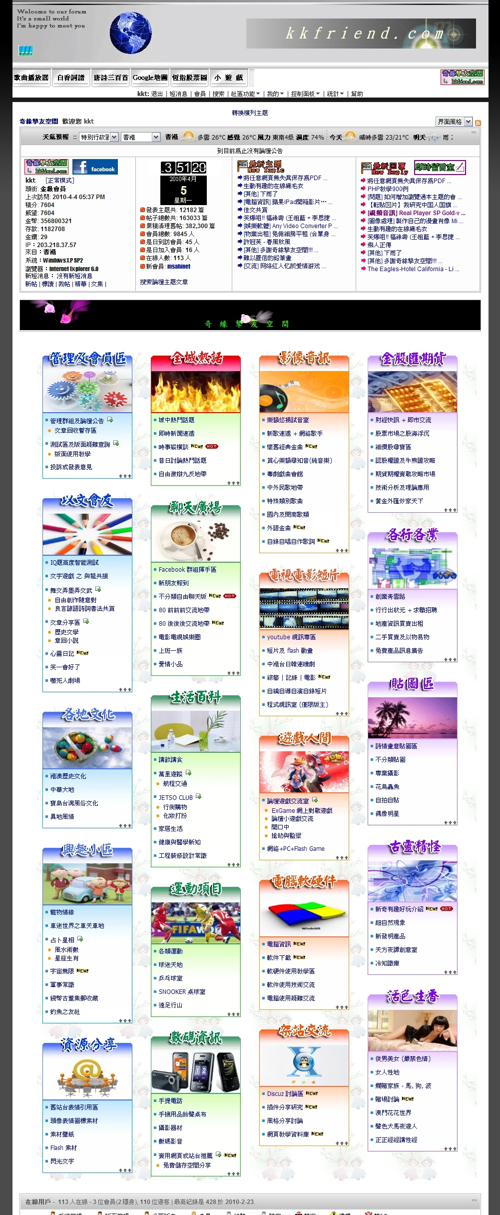 - kkfriend.com 奇緣摯友空間 前身是新浪盟友空間, 站台架設於 2005 年, 架設系統初期採用 phpbb 2.15 版本