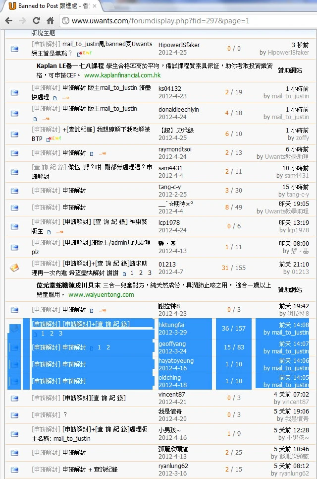 - ↑ uwants個政治版ban拎左我個IP 七斗D 5/4/2009