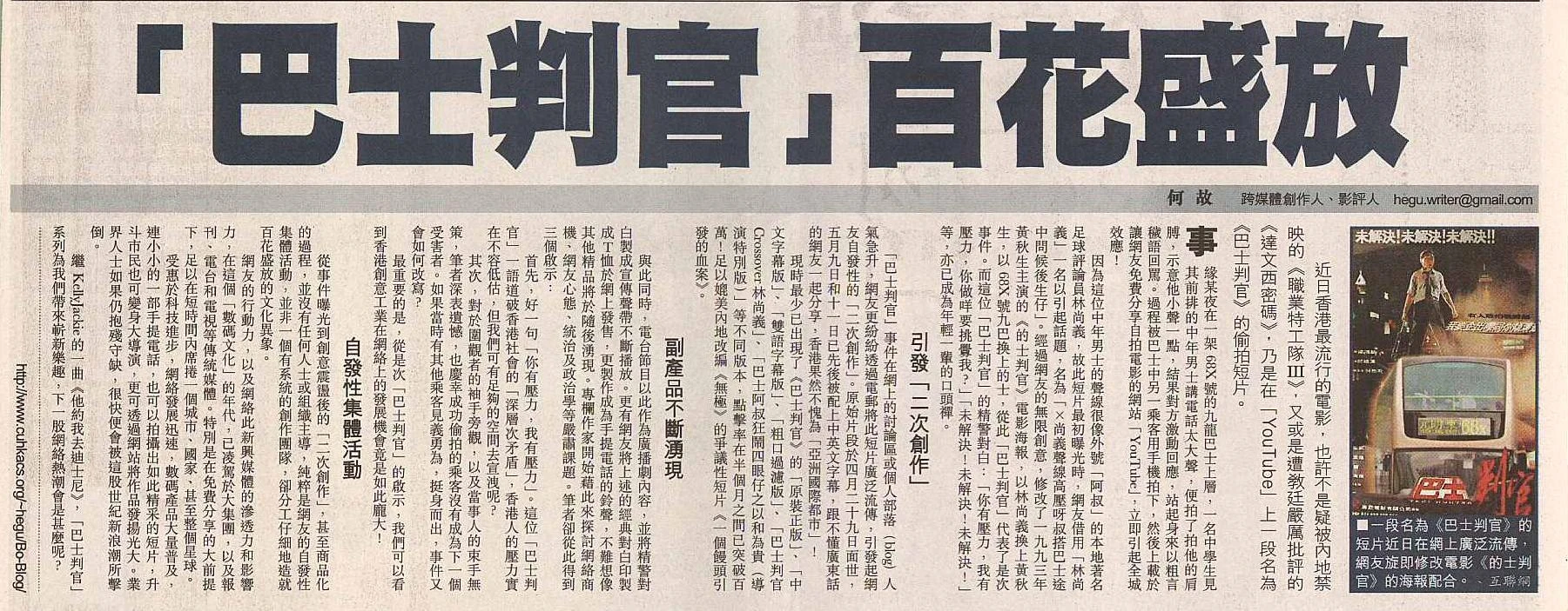 - ↑ 《YouTube掀全球短片熱 本世紀最旺網站 「巴士阿叔」熱爆香江》,原載《明報》,2006年5月31日。