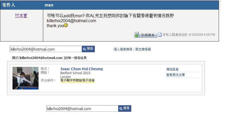 竹本實在高登討論區的一篇帖子,留下MSN電郵地址作回覆。有高登會員發現,張振海在Facebook群組的用戶頁,所留下的MSN電郵地址,與高登討論區帖子留下的MSN電郵地址相同,因此被網民推斷竹本實就是張振海。