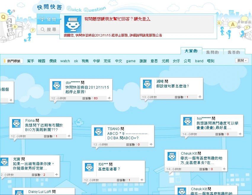 在知識+已停權的用戶,甚至是訪客,亦可以使用快問快答。[2]