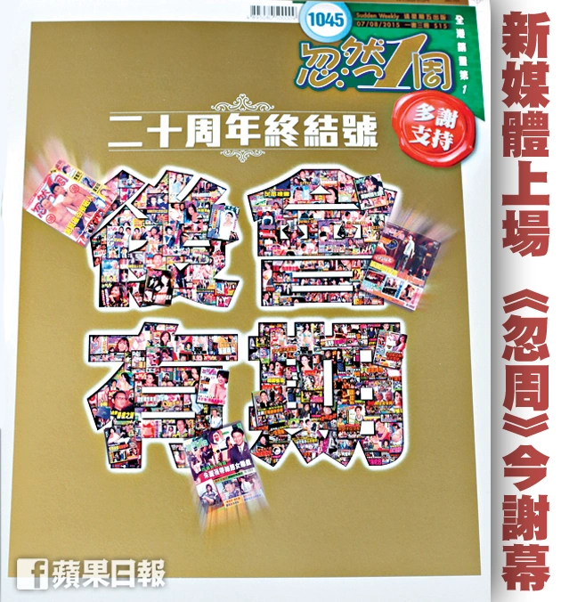 2015年7月下旬,《蘋果日報》證實同屬壹傳媒旗下的《忽然1周》,將會在8月7日出版最後一期,並同時結束《忽周》的網上業務,而當日正正是該娛樂雜誌的創刊20周年。
