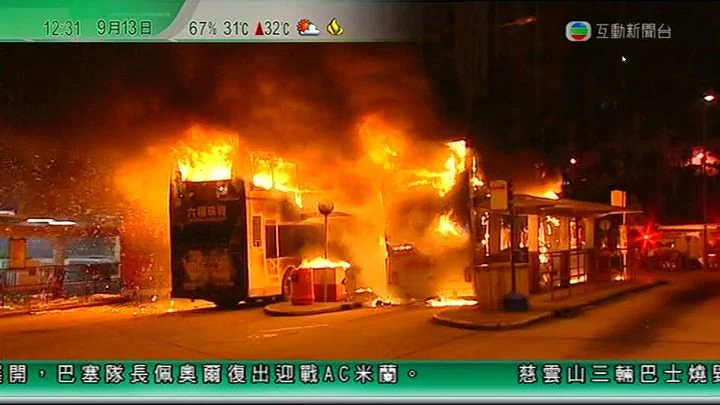 - 九巴三輛3D線巴士被焚毀,商業電台,2011年9月13日。