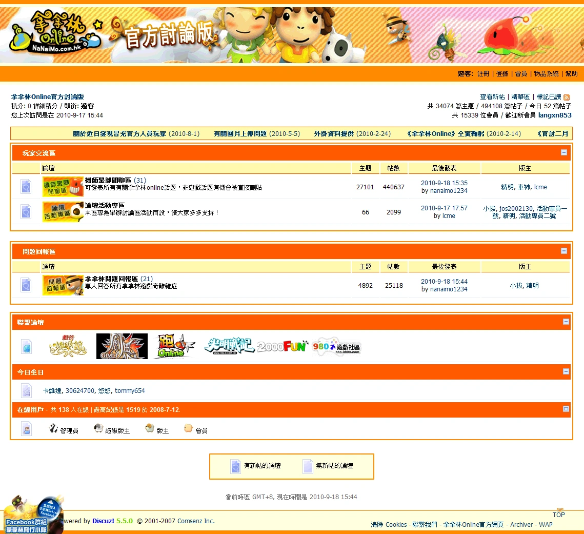 拿拿林online官方討論版所使用的論壇程式是Discuz! 5.5.0。