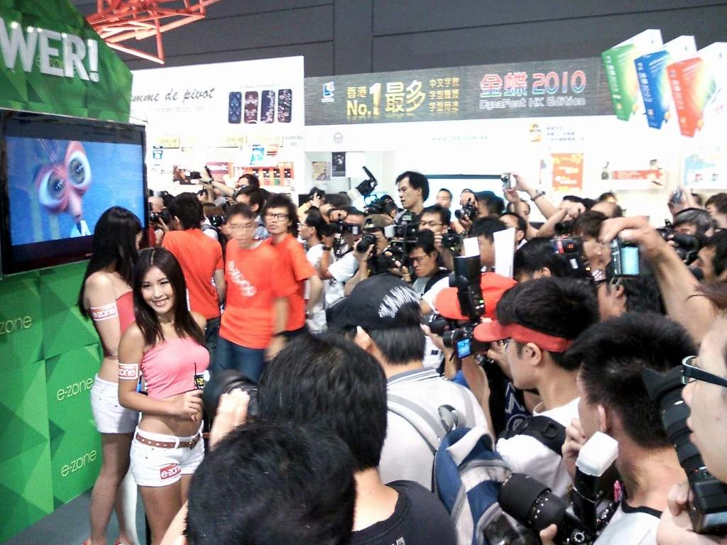 一眾攝影族於香港電腦通訊節,拍攝攤位模特兒。