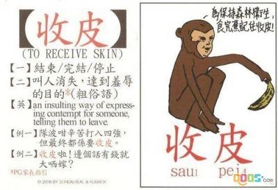 收皮是香港較粗俗的用語,甚至可被視為粗口,意思是叫人住口或滾蛋,近似「收檔」。此詞相信來自番攤賭檔,現時澳門各大賭場仍沿用收皮作為關閉賭枱(Closing Game)的用語,不論是外資或當地的賭場,皆用在各種博戲的賭枱之上。