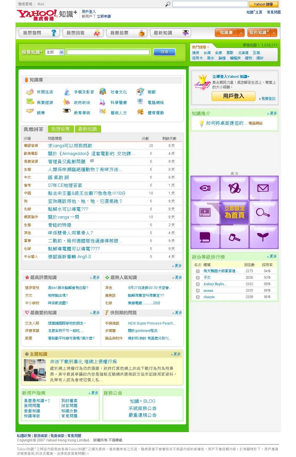 - 抄台灣版,改動時停用超過一天,改動後出現很多問題,至今仍未完全修復。請參考:Yahoo!知識+2008年2月大型改制