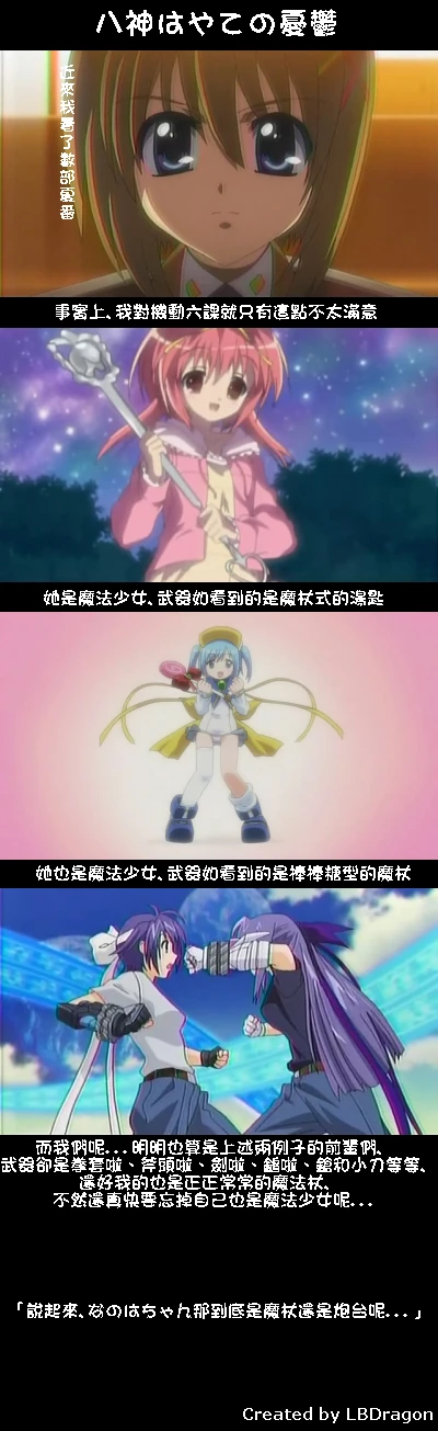 在動畫中,已經有類似的角色出現,例如《魔法少女リリカルなのはStrikerS》。