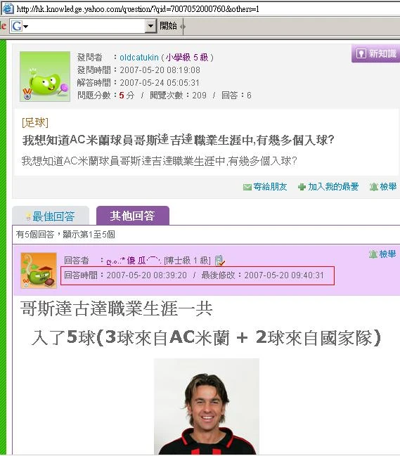 最後修改可指是發問和回答後,利用Yahoo!知識+的server問題以及IE功能,修改的自己答案。
