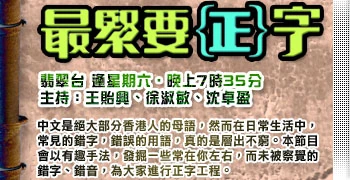 節目以輕鬆手法介紹香港社會日常所見的中文錯別字並予以改正,同時也有環節介紹簡化字、中國文化、香港中文大學學者對粵語廣州話「正音」和粵語本字研究等。