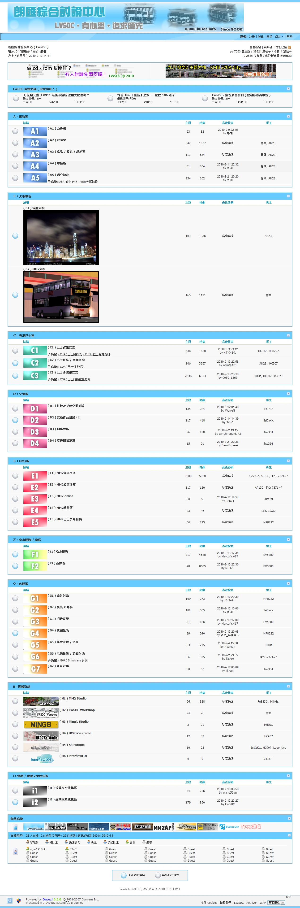現時LWSDC一共有九個分區,21個分版,主要以討論巴士、網絡遊戲MM2及OMSI為主,亦提供其他主題的版面。