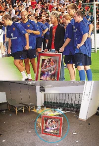李克勤向曼聯送禮時及事後之情景。(原圖)