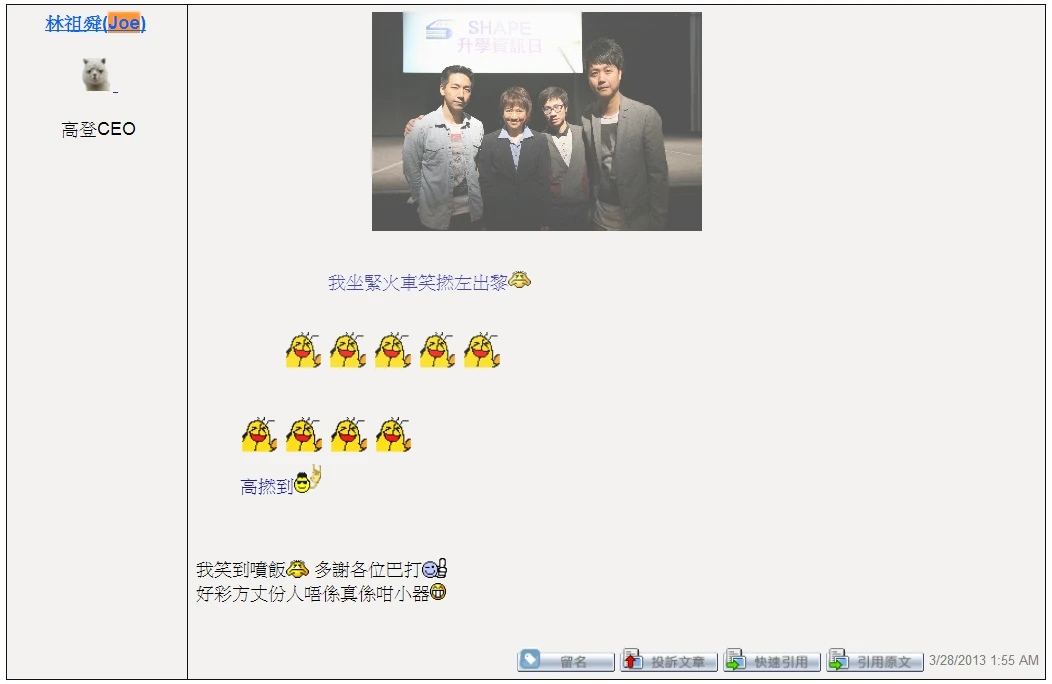 - ↑ 31.0 31.1 31.2 31.3 高登討論區:「林祖舜(Joe)」的個人資料頁