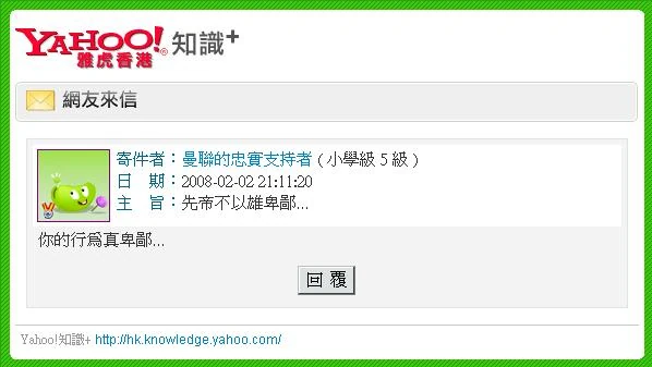 及後有其他人士在「香港網絡大典」支持他,令本人再無立足之地。 但此徒連證據確鑿,: http://zh.wikipedia.org/w/index.php?title=Yahoo%21_%E7%9F%A5%E8%AD%98%2B&diff=prev&oldid=5423213