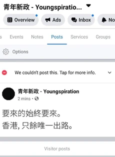 「港版國安法」公布當日,大批政治相關Facebook專頁未能發表帖文,令人關注 5月下旬 中共全國人大會議正式通過「港版國安法」,網民紛稱一國兩制壽終正寢,美、英、澳、加拿大等國表明反對立場,美國總統特朗普更宣布開始取消給予香港特別待遇的程序。 美國一黑人男子因警暴致死,觸發全國各地大規模騷亂,不少網民將示威情勢及當局應對方法與香港持續的「反送中」抗爭相比。 5月29日 Facebook行政總裁朱克伯格表示密切注視香港局勢發展,希望在落實「港版國安法」後,繼續為香港市民提供Facebook和WhatsApp服務。 5月27日 《國歌法》是日於立法會恢復二讀,警方早駐重兵於立法會附近,全港多區均出現示威,警方大舉鎮壓,全日拘捕近400人,當中包括大批學生。 美國國務卿蓬佩奧向國會報告香港已失去自治地位,因此不再獲得美國賦予特殊待遇,網民熱議。 有YouTube用戶發現在影片下方留言「共匪」和「五毛」等批評中國共產黨用詞,會遭火速刪除;YouTube稱是自動過濾系統出錯。 5月26日 一代「澳門賭王」何鴻燊病逝,享年98歲,網民討論其生平;港大悼文照片卻將當中的本土民主前線前發言人梁天琦裁走,引起熱議及改圖。 5月25日 早前被捕的Telegram群組「開掛之達人」管理員提堂再訊,控方指群組內有過百條訊息涉及煽惑他人傷人的言論,另亦涉及300萬元的錢銀交易,警方將循洗黑錢方向繼續調查。 5月24日 網民響應號召於銅鑼灣遊行反對「港版國安法」,警方發射催淚彈驅散,是武漢肺炎全面爆發後首次,全日近200人被捕。 紅極一時的「貓明星」「尖東忌廉哥」主人是日透過官方Facebook公布愛貓病逝,終年14歲,不少粉絲致哀。 檢 • 論 • 編 香港網絡大事表總表新聞動態 • 香港網絡動態列表高登大事表00年代2000 • 2001 • 2002 • 2003 • 2004 • 2005 • 2006 • 2007 • 2008 • 200910年代2010 • 2011 • 2012 • 2013 • 2014 • 2015 • 2016 • 2017 • 2018 • 201920年代2020 • 2021膠登大事表舊膠登時代2006 • 2007 • 2008 • 2009 • 2010新膠登時代2013 • 2014 • 2015 • 2016 • 2017 • 2018郊登年代2019 • 2020LIHKG大事表10年代2016 • 2017 • 2018 • 201920年代2020 • 2021網誌界大事表00年代2003 • 2004 • 2005 • 2006 • 2007 • 2008 • 200910年代2010 • 2011 • 2012 • 2013 • 2014 • 2015 • 2016 • 2017 • 2018Facebook大事表2008或以前 • 2009 • 2010 • 2011 • 2012 • 2013 • 2014 • 2015 • 2016 • 2017 • 2018 • 2019Yahoo!知識+大事表2006 • 2007 • 2008 • 2009 • 2010 • 2011 • 2012 • 2013及以後 分類:模板呼叫時使用重複的參數的頁面大事表 除非另有註明,否則社區內容均使用CC-BY-SA授權條款。