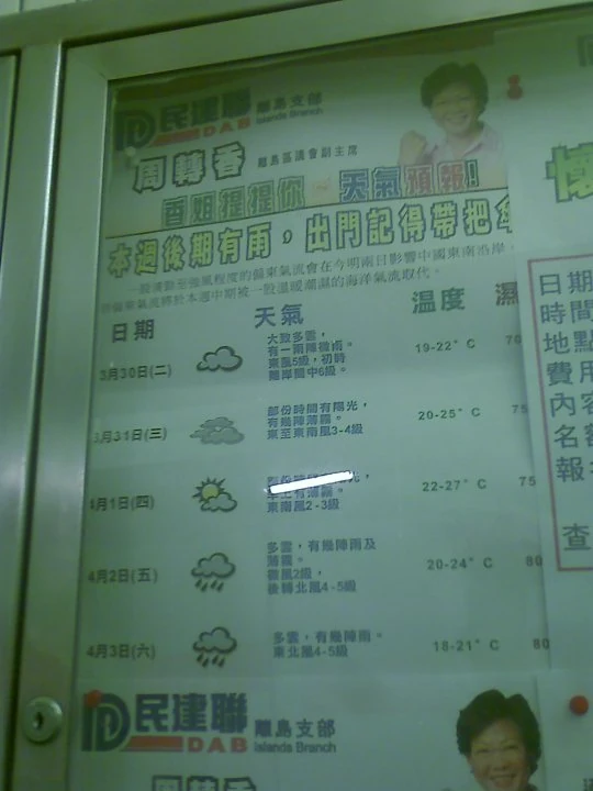 有民建聯離島區區議員利用佈告板列出天氣預告,引起網民不滿