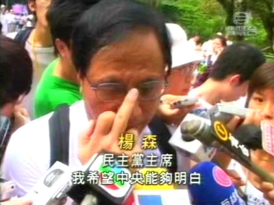 2004年7月1日,楊森在無綫新聞訪問中提及「我希望中央能夠明白」,並不慎用中指(不文手勢)托眼鏡,結果被網民製成截圖,更是經典截圖之一。