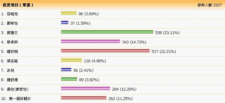 Uwants英皇女容祖兒,阿Sa,阿嬌,Yumiko,Mandy,Isabella,泳兒,湯怡,鍾舒漫──誰最靚(美麗)選舉