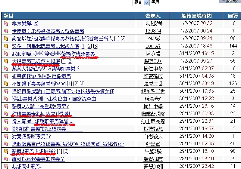 - ↑ 今晚高登8點打後,我會紀錄邊D毒男上黎留言