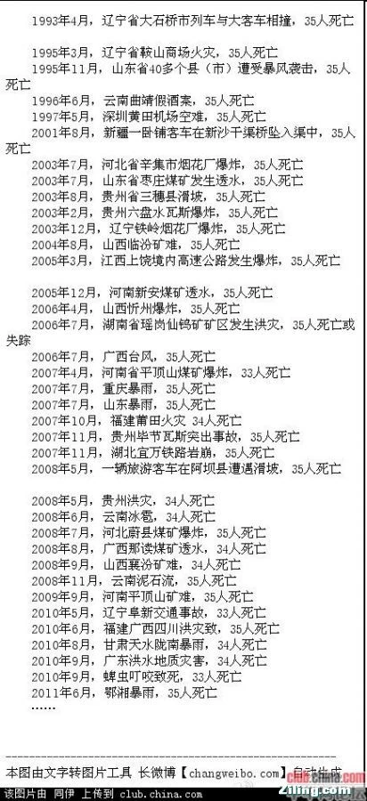 網上流傳的強國致命事故列表,最高的死亡人數都是35人。