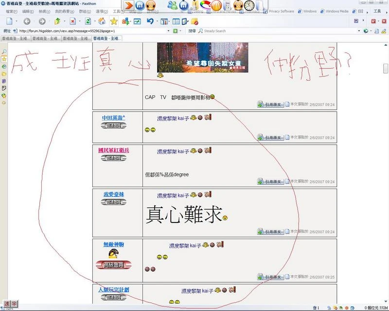 會員Metallica:o)(ID:99871)諷刺會員中田英壽^(ID:99999)指他抽水,並圖文並戍