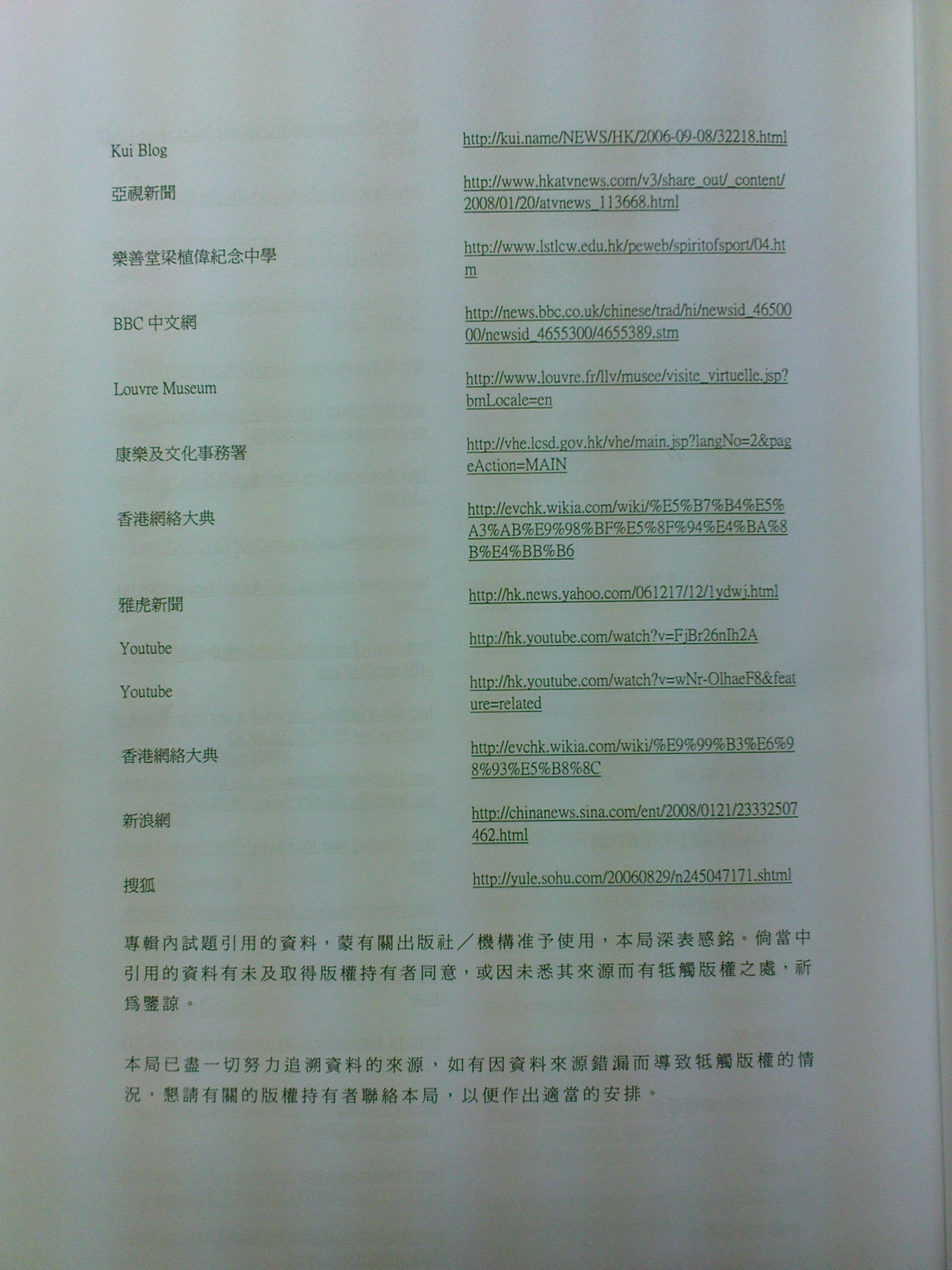 香港考試及評核局考試報告「鳴謝」香港網絡大典