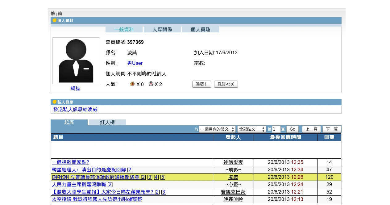 | 2013年6月20日 (四) 04:56 | 20130620 hkgolden 凌威 profile.png (檔案) | ![]() |