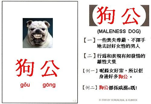 2011年,有網民將「狗公」一詞,衍生出潮語「狗衝」。「狗衝」除了是「狗公」的諧音外,也代表一眾男性如狗隻,衝向追求異性。