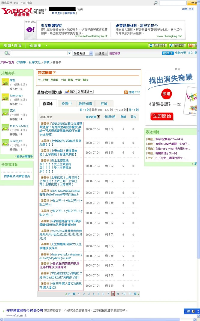 而三個工作天後,洗版問題仍雄據第五至八板,可見Y狗已經放棄基督教區主權,成為反基聯軍解放區。