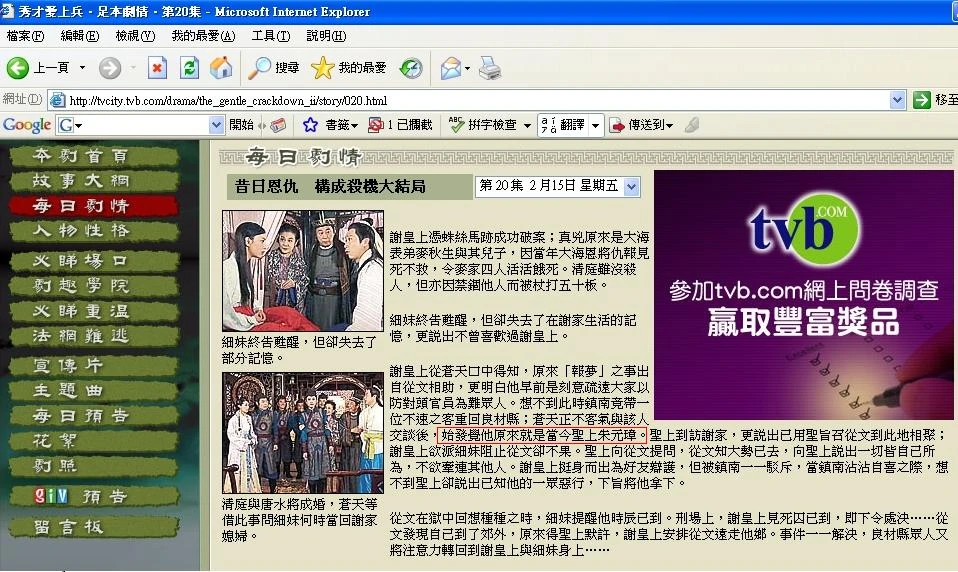 此劇於2008年1月21日至2月15日,逢星期一至五晚上9時30分至10時30分,一共播映20集。