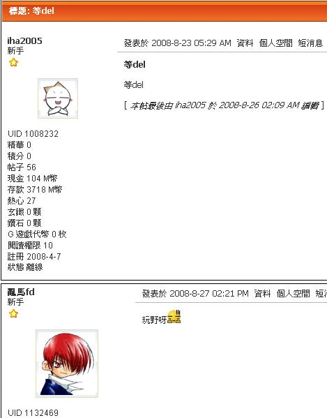 - 「等del主題」/「等del topic」:等待刪除整個主題帖子。