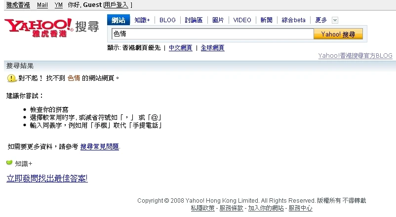 2008年10月12日,有高登網民發現,在雅虎香港搜尋「文革」有關的圖片時,有關圖片不能顯示,因而揭發雅虎香港疑似自我審查,過濾指定的搜尋字眼。