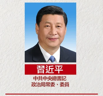 習近平(Xi Jinping),中國共產黨(中共)第五代領袖,2012年11月中共十八屆一中全會起出任中共中央委員會總書記及中共中央軍事委員會主席,成為最高領導人。他同時是中共第十七至十九屆中央政治局常委,第十七屆中央書記處書記。2013年3月第十二屆全國人大上,循例當選中華人民共和國主席和中國中央軍事委員會主席。2017年中共十九大連任總書記,習近平思想寫入黨章。2018年修憲廢任期制,成為繼毛澤東之後的終身領袖。