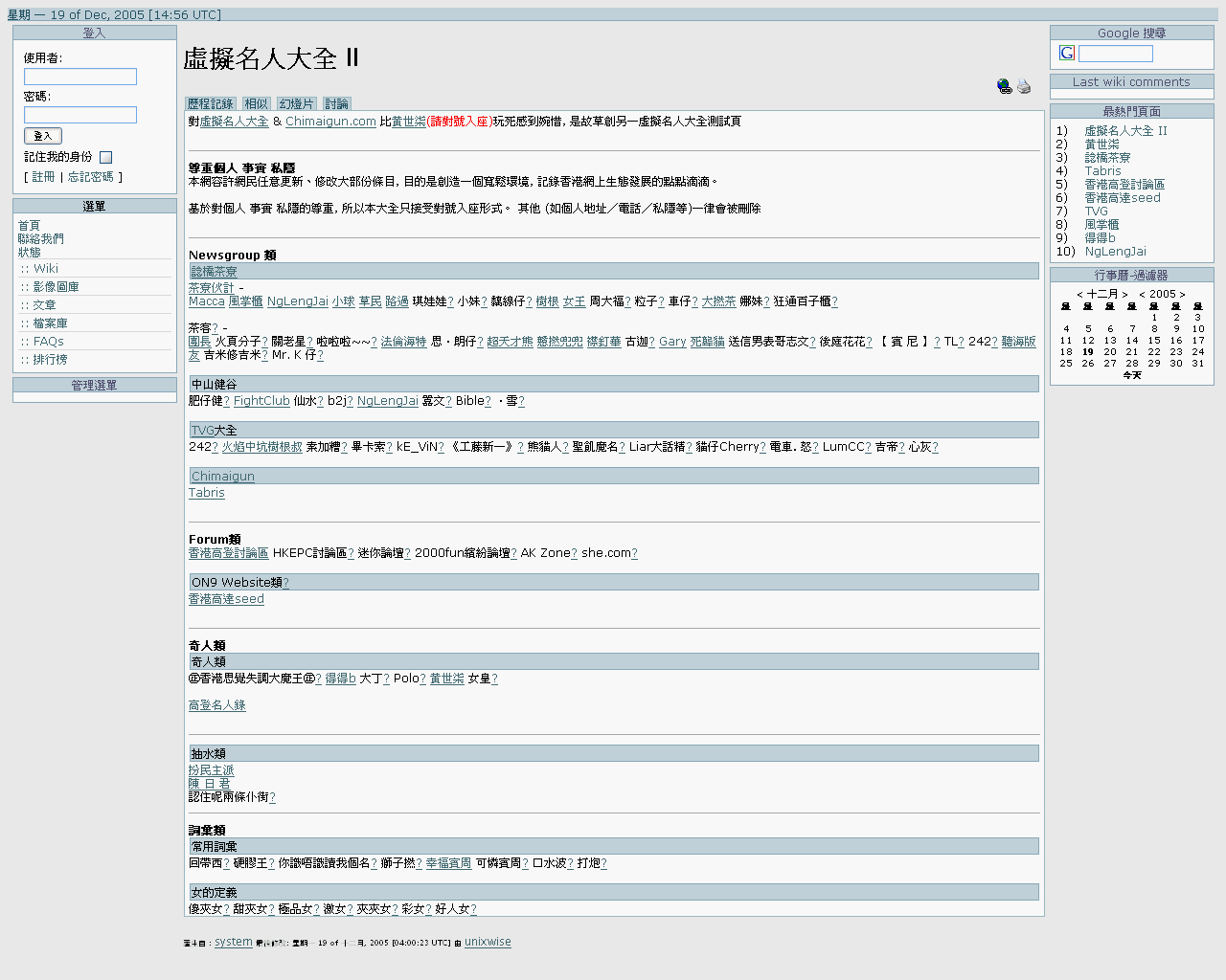 - 虛擬名人大全II網絡存檔(2005-12-19)