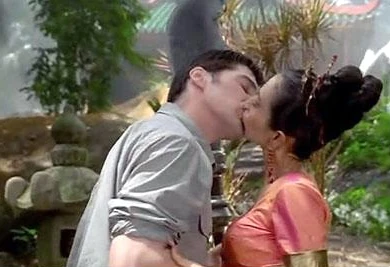 電視劇《齊天大聖》中,一名外籍男子跟片內的觀音接吻。