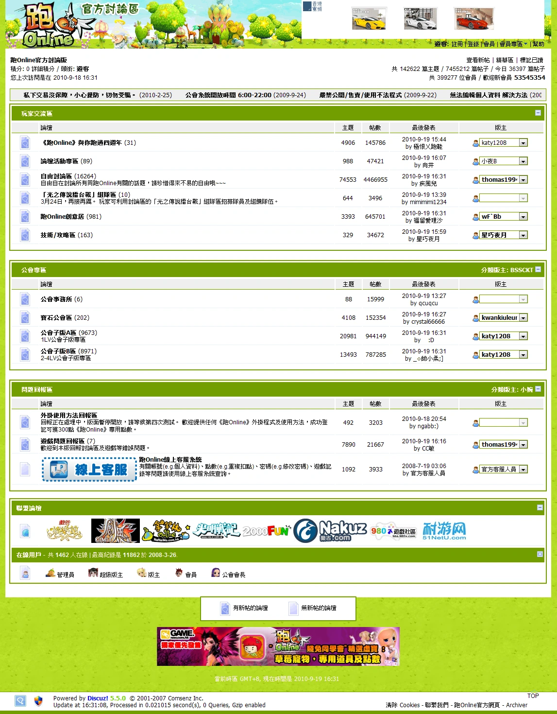 跑Online官方討論版所使用的論壇程式為Discuz! 5.5.0。