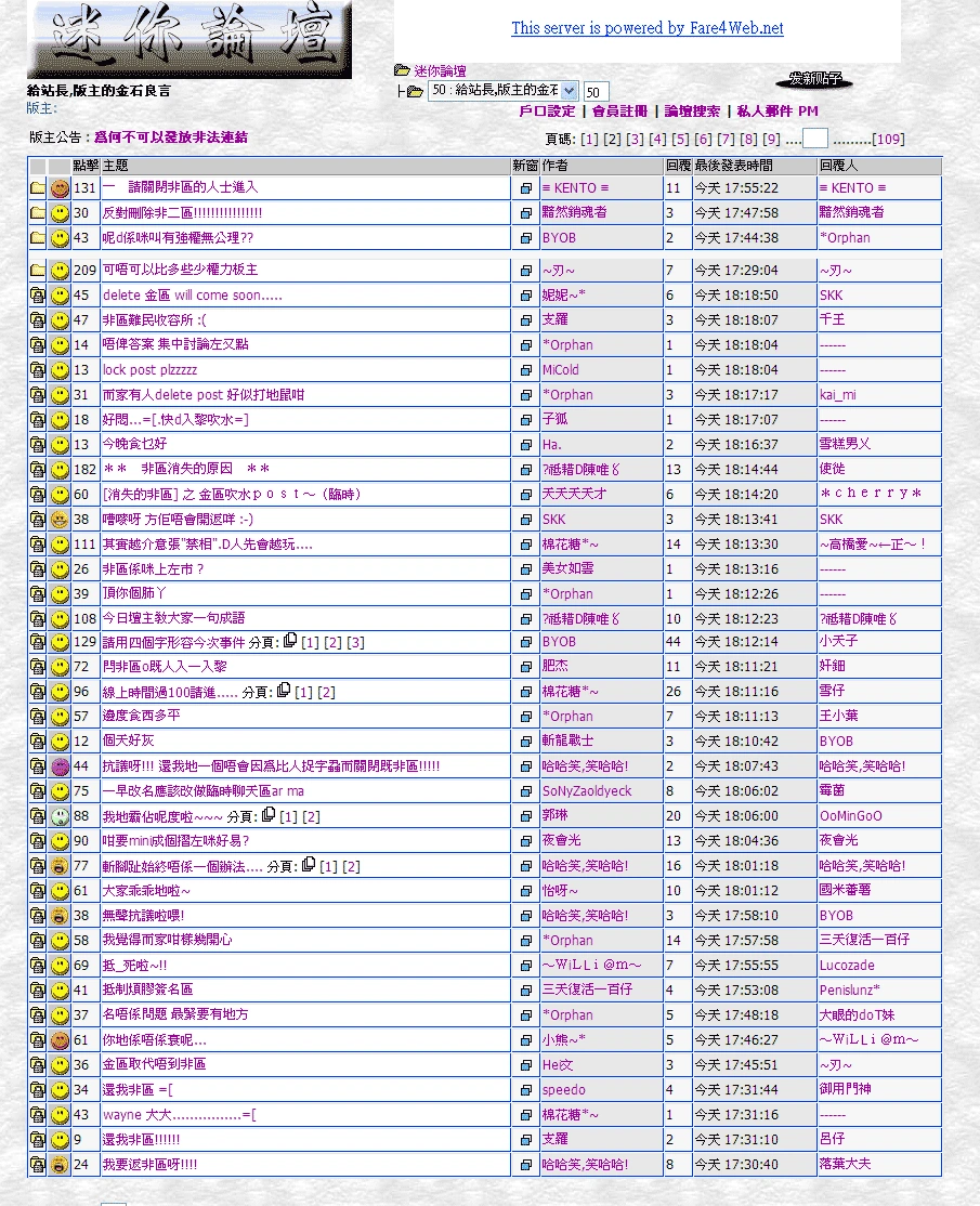 大學生(以前會考生)經常去的論壇,常有出現觀念錯誤的帖子,曾與高登討論區勢不兩立,經常有意無意挑釁高登討論區,迷你論壇曾入選全球最受歡迎網站100大之一,其名氣超越高登,令一眾高登人大為不滿,期間曾引發兩論壇間衝突。