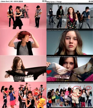 - 插入的女仔當中,都有撕毀物件的鏡頭──Miley Cyrus撕的是相,而鄧紫棋就撕爛衣衫。