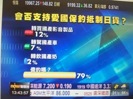 NOW新聞台的民調問及是否支持抵制日貨,當中用了網絡潮語「傻的嗎?」作答案的一項有近八成觀眾選擇。